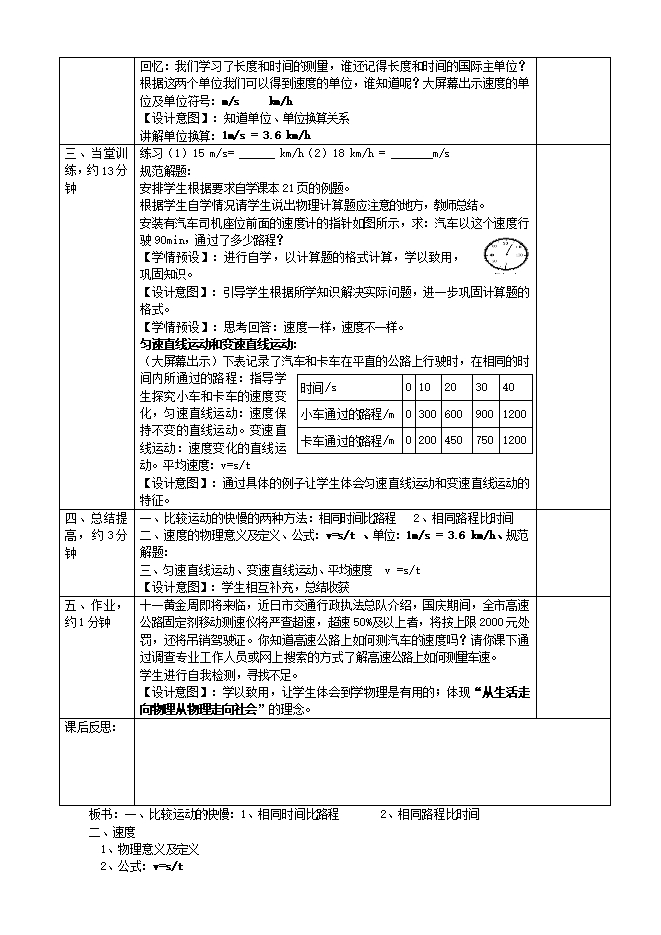 【内容简介】课 题: 运动的快慢