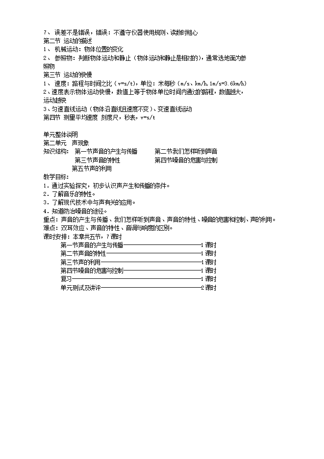关 键: 使学生会用停表和刻度尺正确测量平均速度,加深对平均速度的理解。