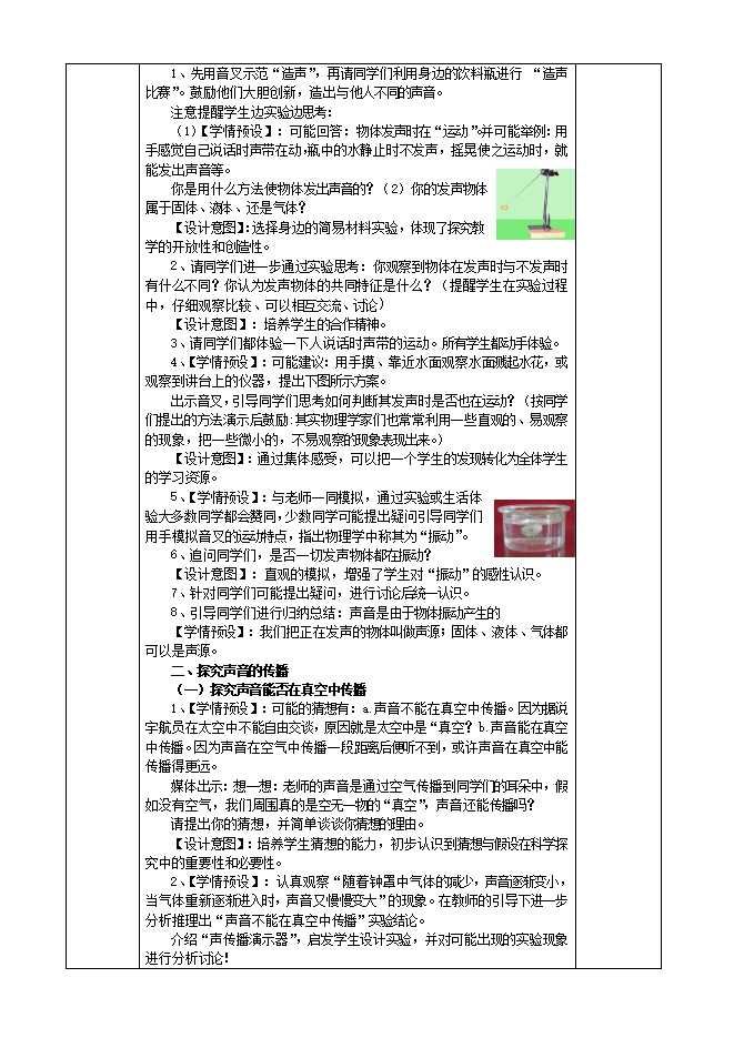【学情预设】:在老师充满激情的叙述中,产生走进“声的世界”进行探究的欲望。