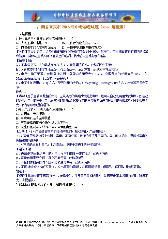 【点评】此题考查了声音的产生、传播条件,以及音色差别的原因,是声现象基本规律的考查,难度不大,容易解答。