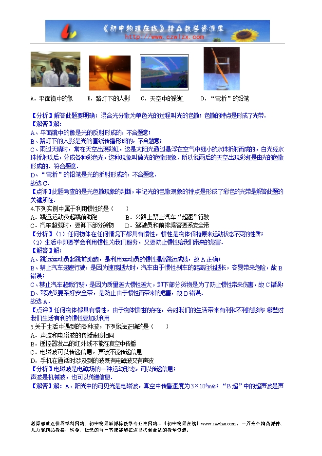 【点评】对于生活中数据的估测,应从实际的角度出发进行判断,也可从自己的角度出发判断,如自己的身高、自己的体重、自己正常时的体温及正常行走的速度等方面来与题目中的数据比较,只要相差不大,即该数据就是合理的。