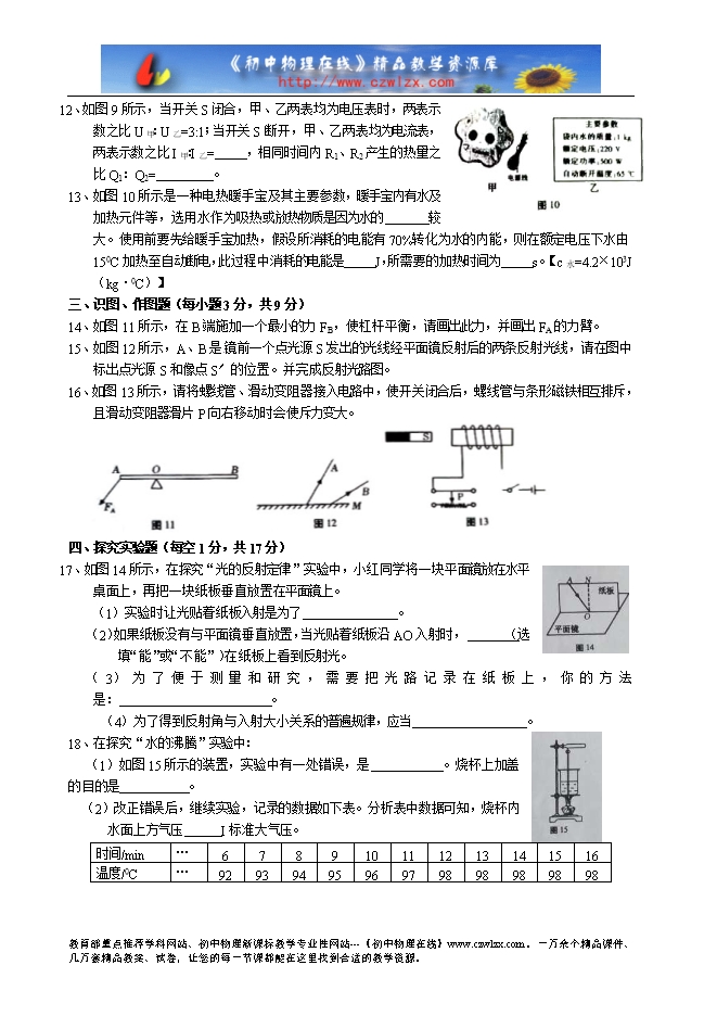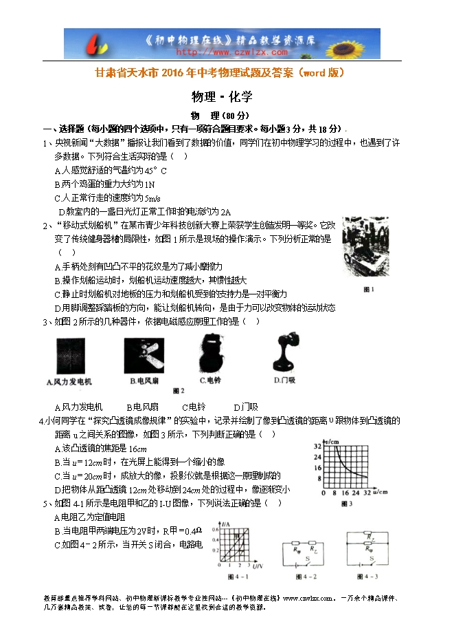 甘肃省天水市2016年中考物理试题及答案(word版)