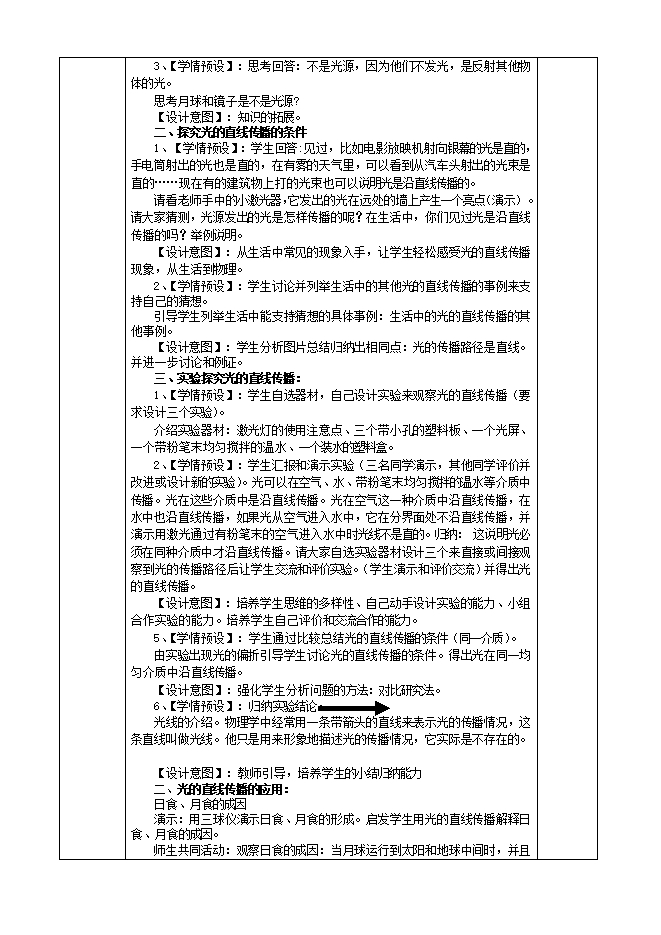 3、通过对日食、月食成因的教学,进行反对迷信、崇尚科学的思想教育.通过对我国古代对小孔成像研究所取得的成就,进行爱国主义教育,对学生进行严谨的科学态度教育. 。