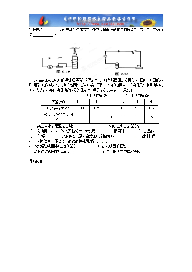 2、电磁铁的磁性 强弱与 和 及有无 有关。