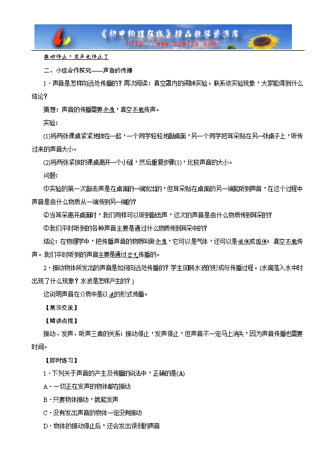 1.声音是由物体的振动产生的,振动停止,发声就停止。