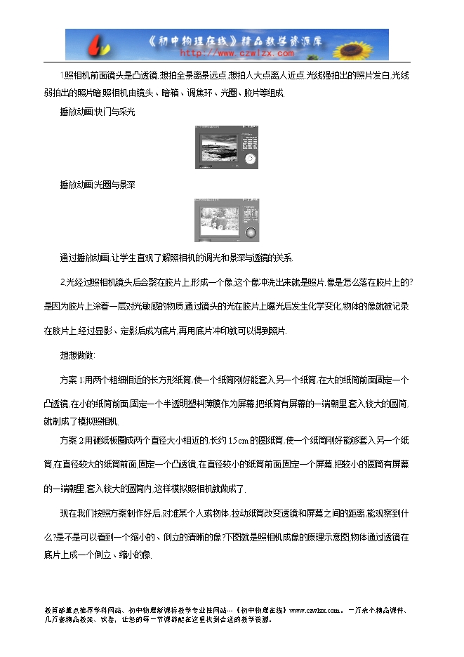 1.经历制作模型照相机的过程,了解照相机的成像原理.