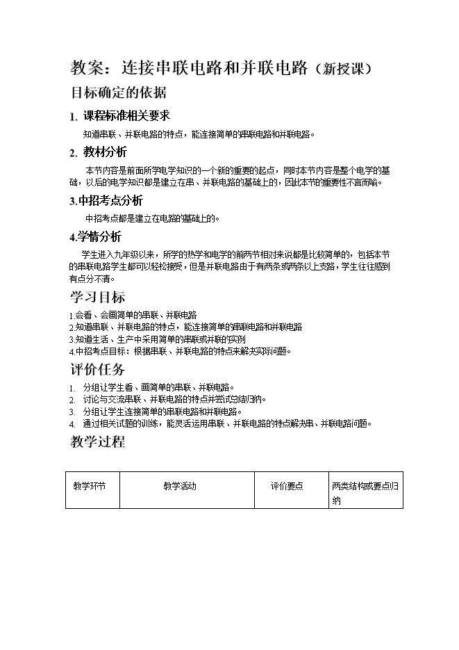 本节内容是前面所学电学知识的一个新的重要的起点,同时本节内容是整个电学的基础,以后的电学知识都是建立在串、并联电路的基础上的,因此本节的重要性不言而喻。
