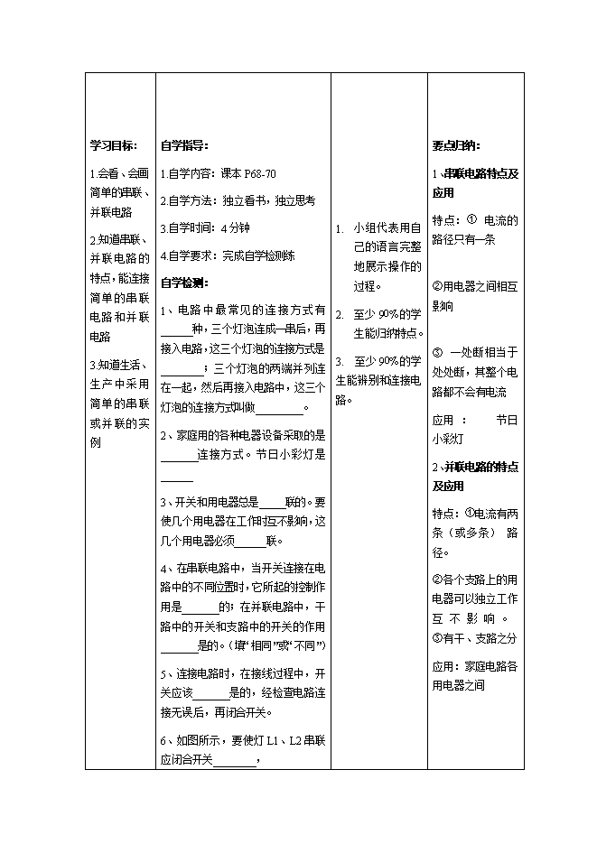 2.知道串联、并联电路的特点,能连接简单的串联电路和并联电路