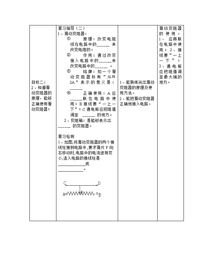 2、知道滑动变阻器的原理,能够正确使用滑动变阻器;