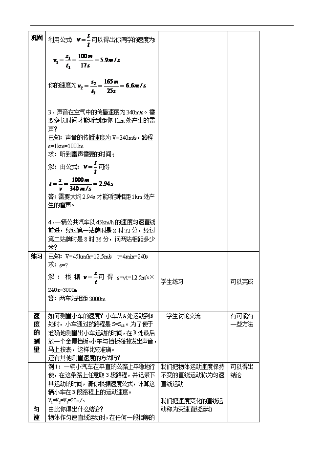 2、知道匀速直线运动和变速直线运动特征,会用实验的方法判断。