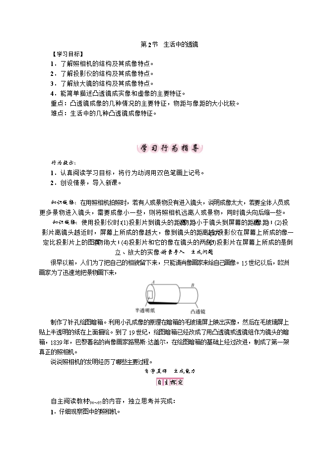 【名师测控】2016年秋人教版八年级物理上册:5.2生活中的透镜 学案