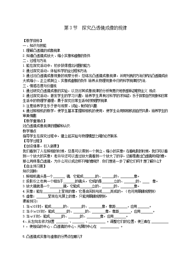 1.通过研究凸透镜成像的实验,以及对其成像规律的分析有意识地渗透辨证唯物主义 观点.