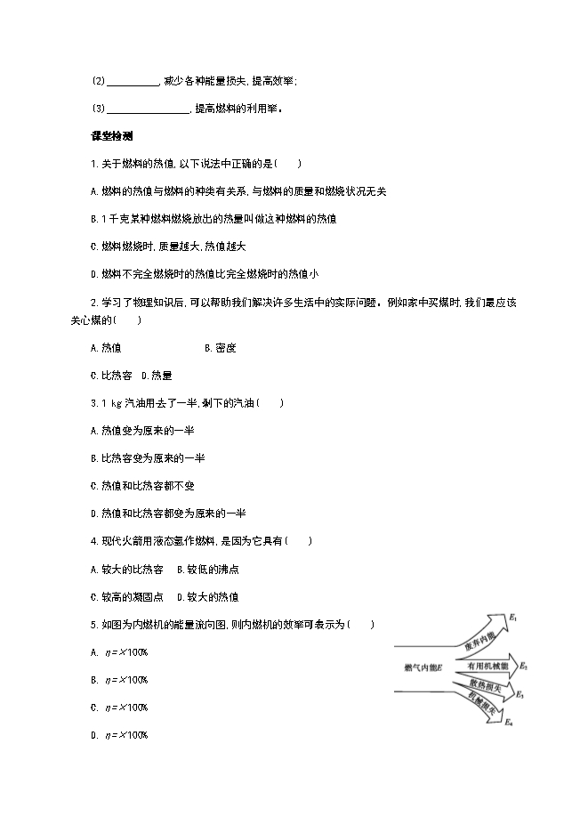 1.某种燃料完全燃烧放出的热量与其 之比,叫做这种燃料的热值。