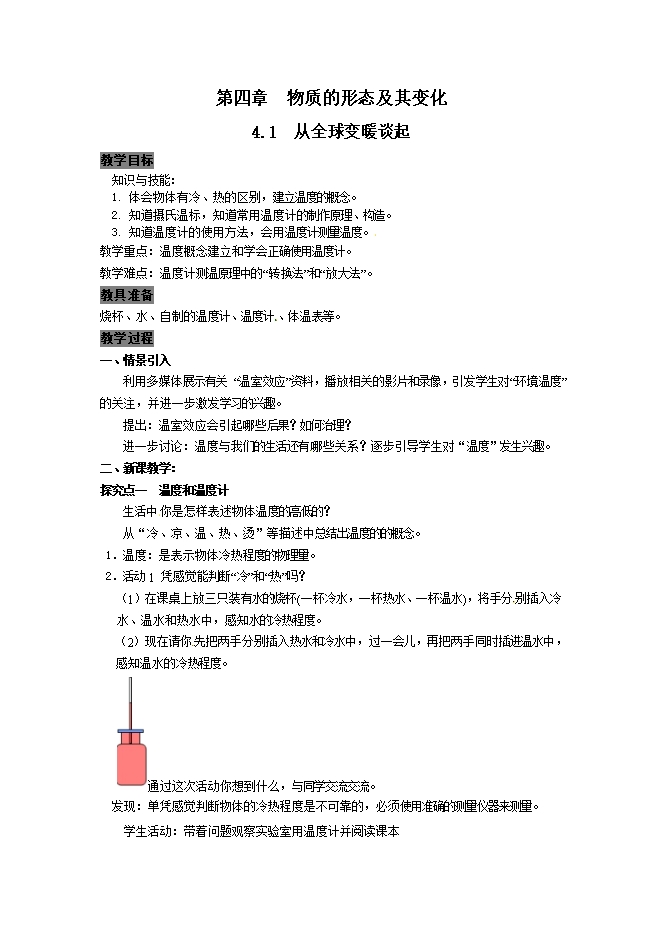 物理(沪粤版)八年级上册教案:4.1从全球变暖谈起