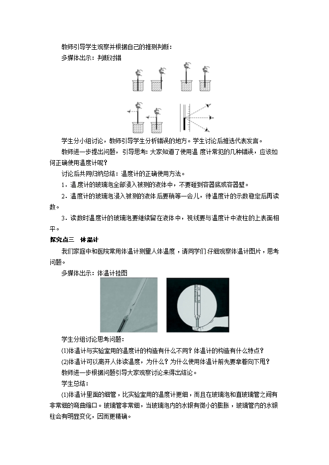 教学难点:温度计测温原理中的“转换法”和“放大法”。