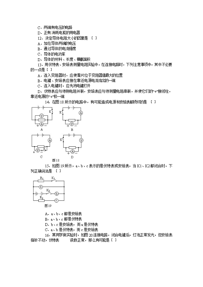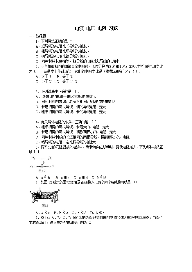 5.将图12的变阻器接入电路中,当滑片向左移动时,要使电阻减少,下列哪种接法正确[ ]