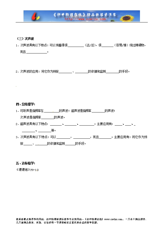 1.了解超声波的特点,知道超声波在现代技术中的应用;