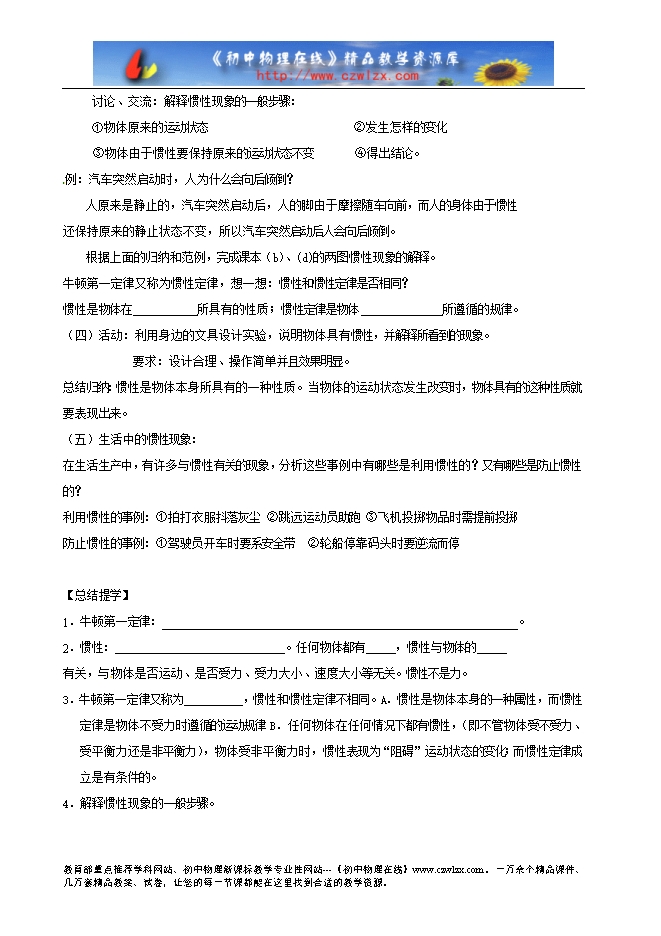 2.进一步理解牛顿第一定律并学会利用惯性和防止惯性造成的危害。
