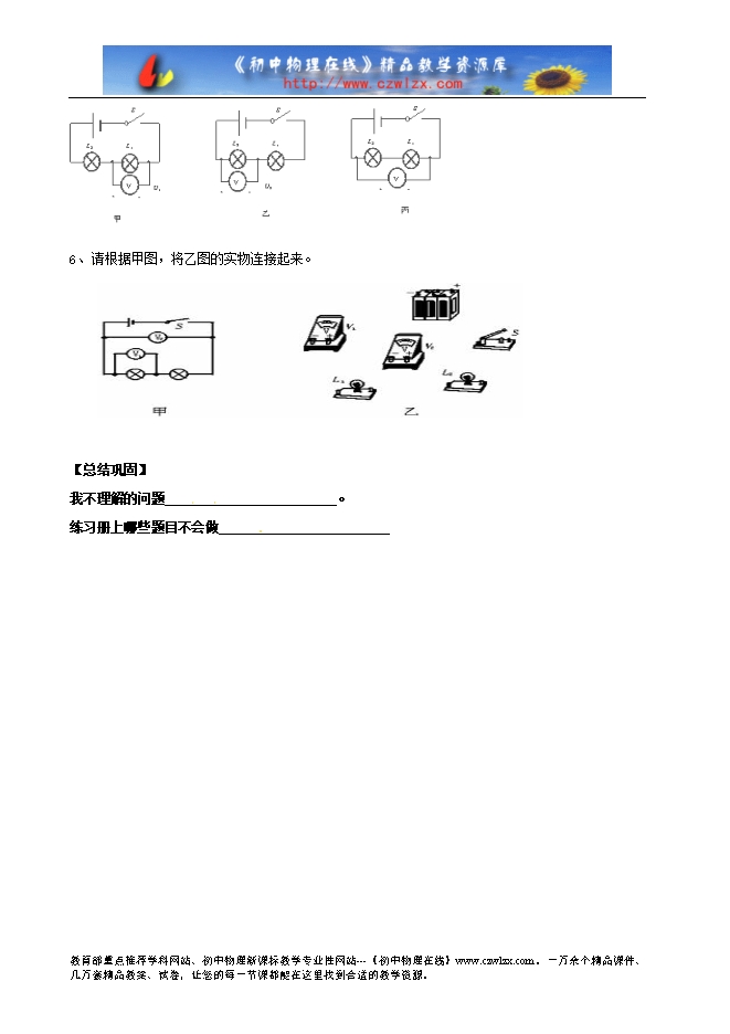 5、下 列各图中电压 表分别测量的是哪两端电压?