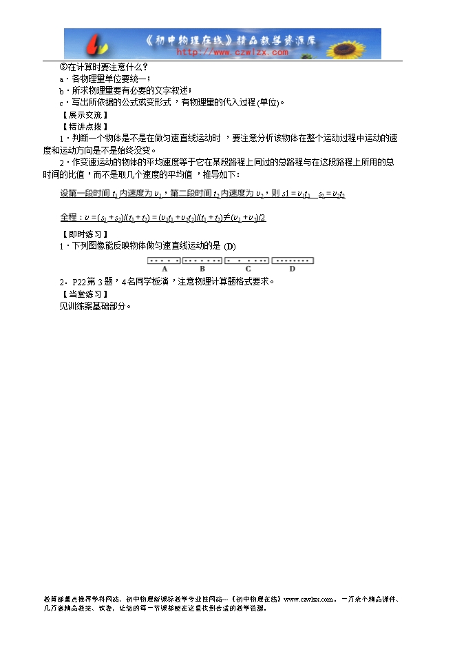 3.认识匀速直线运动、平均速度。