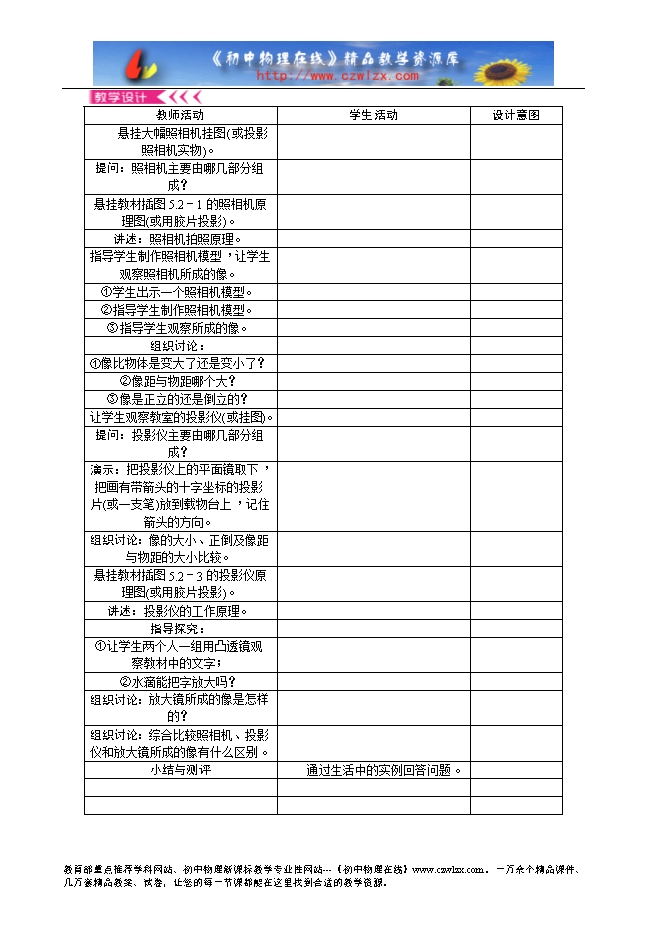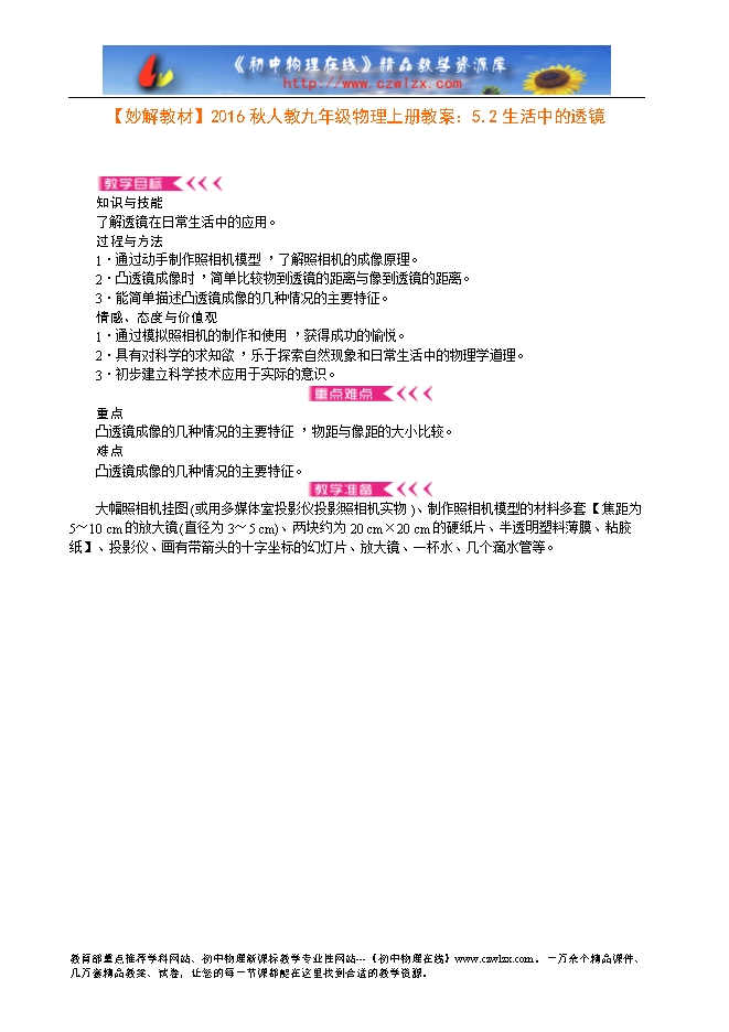 【妙解教材】2016秋人教九年级物理上册教案:5.2生活中的透镜