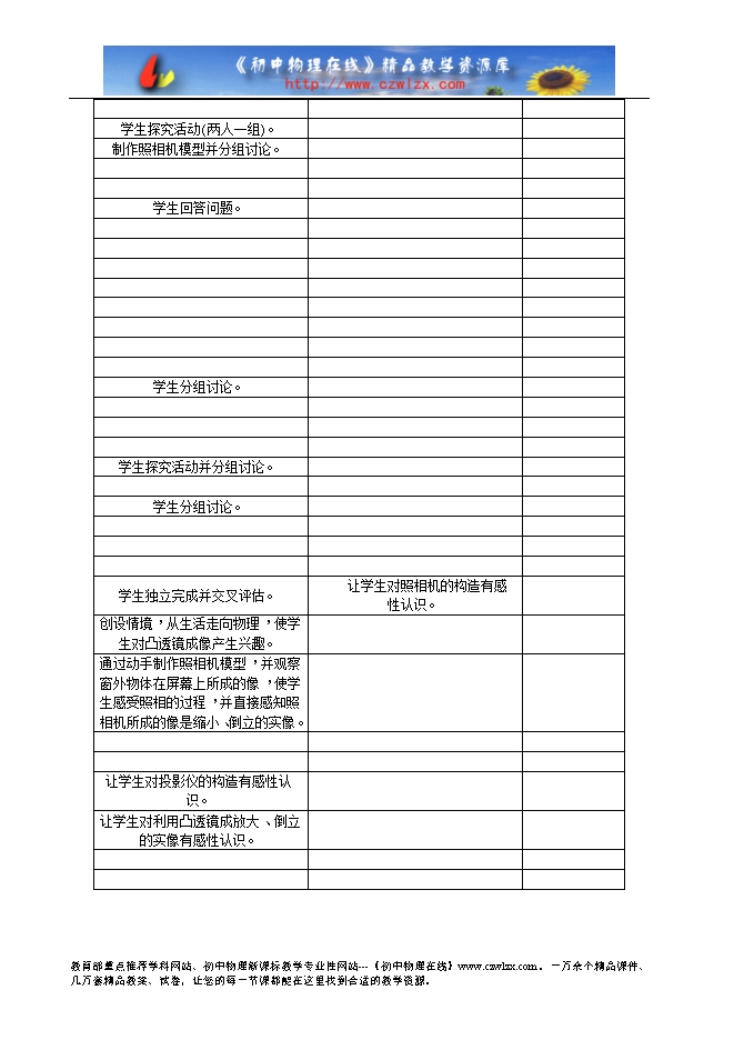 1.通过动手制作照相机模型,了解照相机的成像原理。
