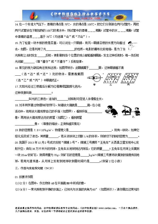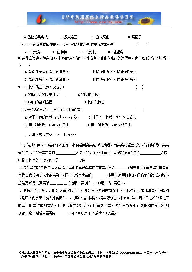 - 7552023-2024学年湖北省襄阳市宜城市八年级上学期期末考试物理试题及答案