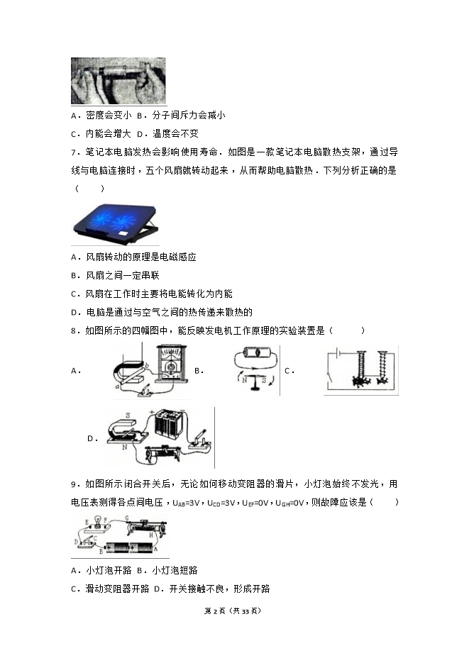 - 100黑龙江省哈尔滨市松北区2020-2021学年度九年级上学期期末考试物理试题(附答案)