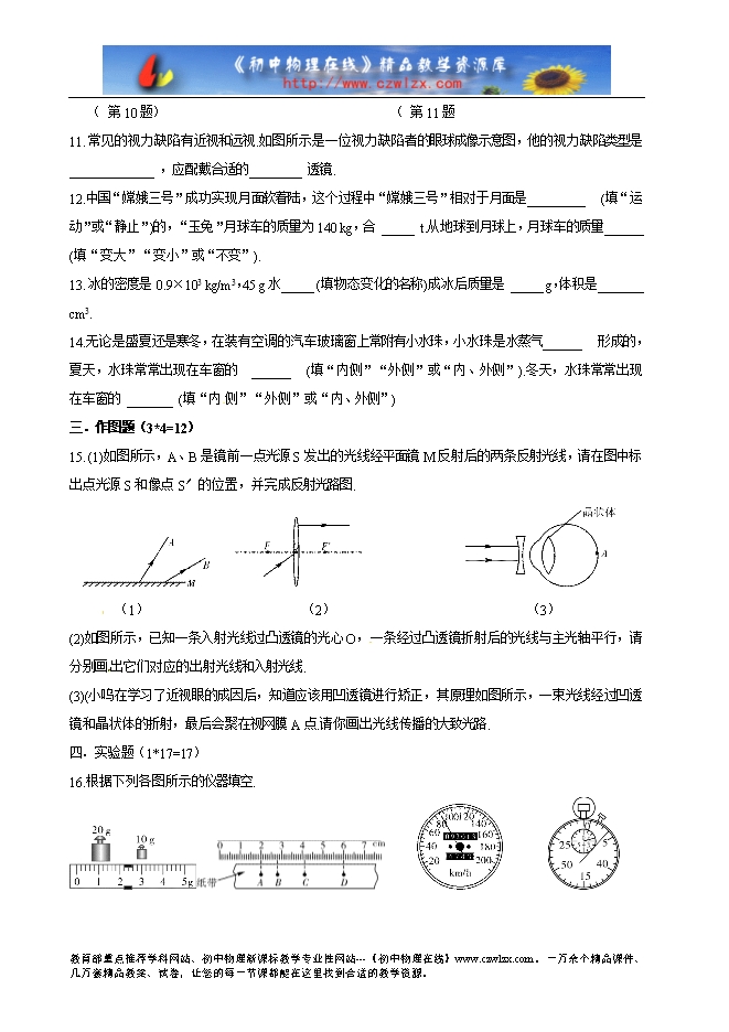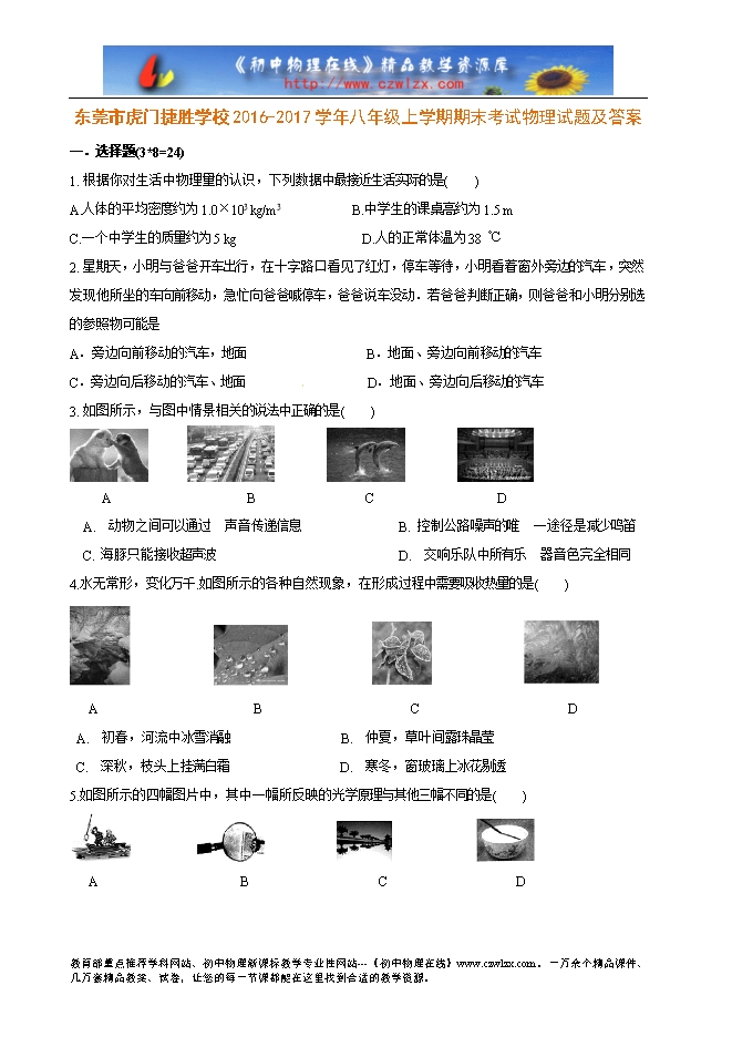 东莞市虎门捷胜学校2016-2017学年八年级上学期期末考试物理试题及答案