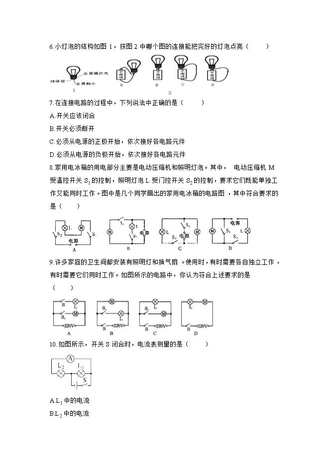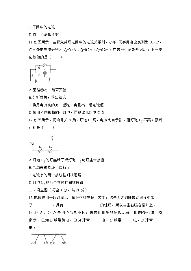 人教版九年级物理全册第十五章《电流和电路》单元测试题及答案(3份打包)