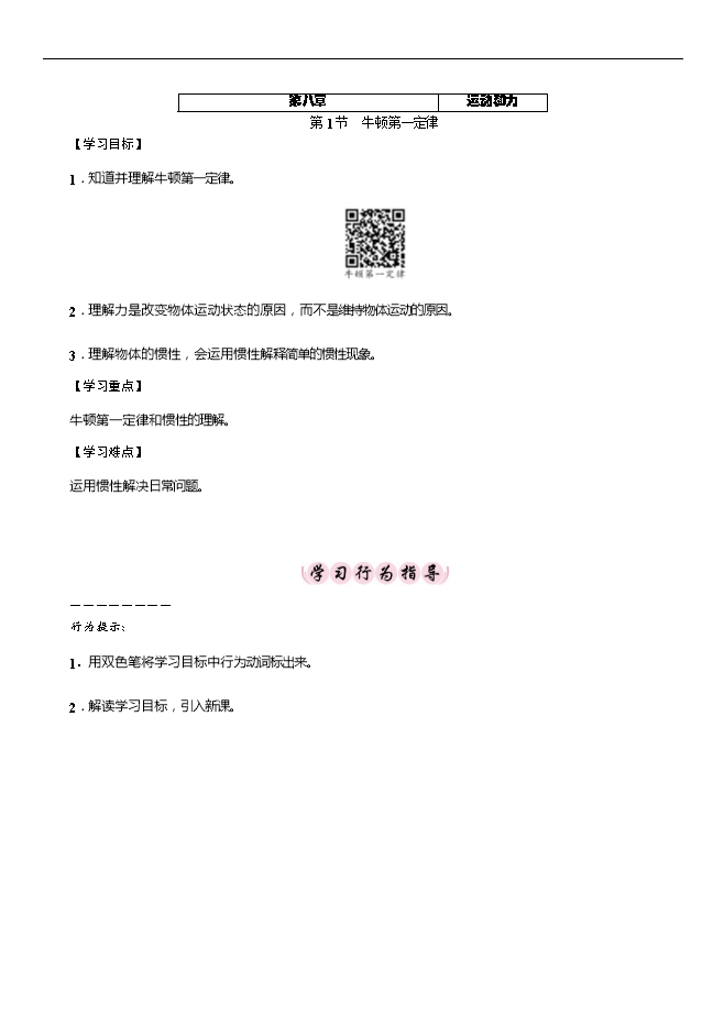 3.理解物体的惯性,会运用惯性解释简单的惯性现象。