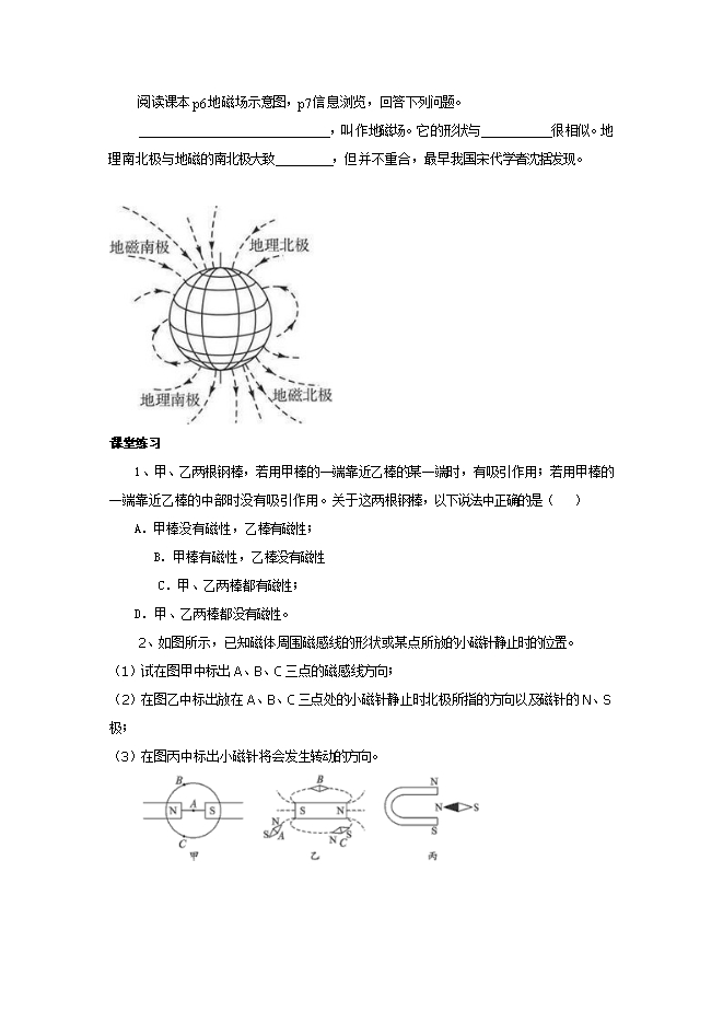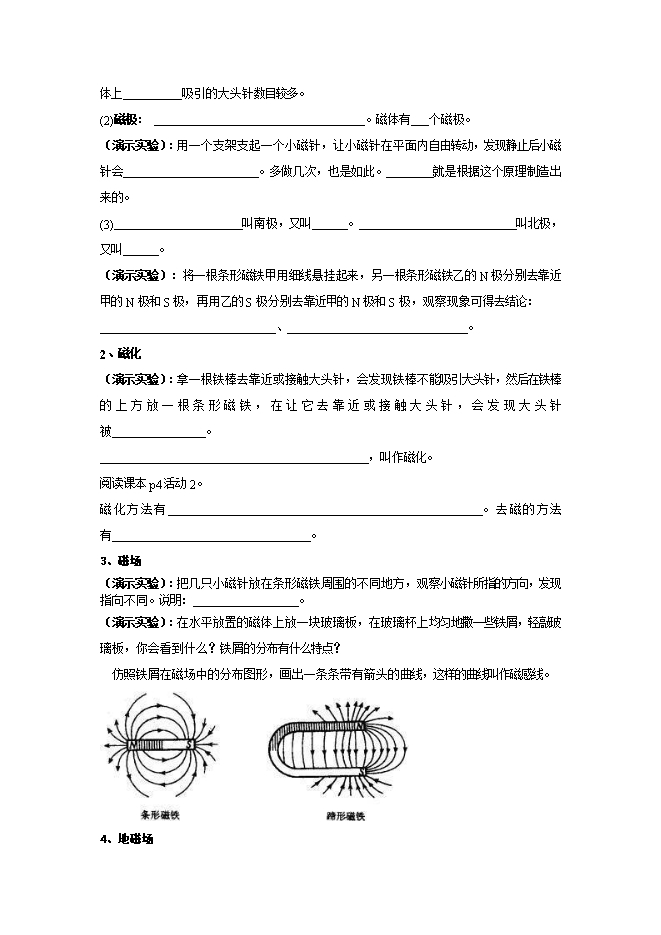 5、知道地球周围有磁场,知道地磁的南、北级。