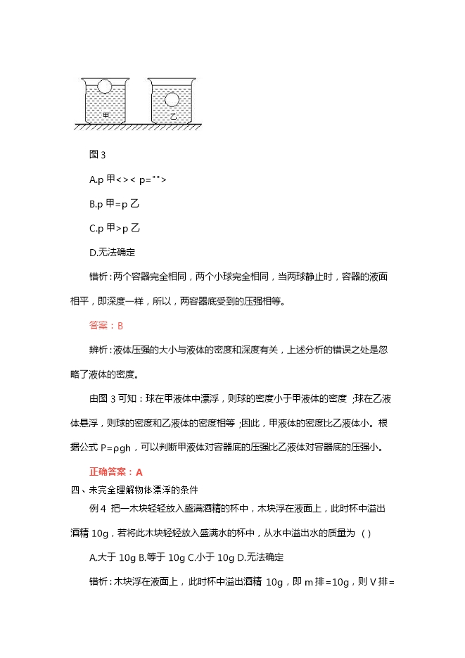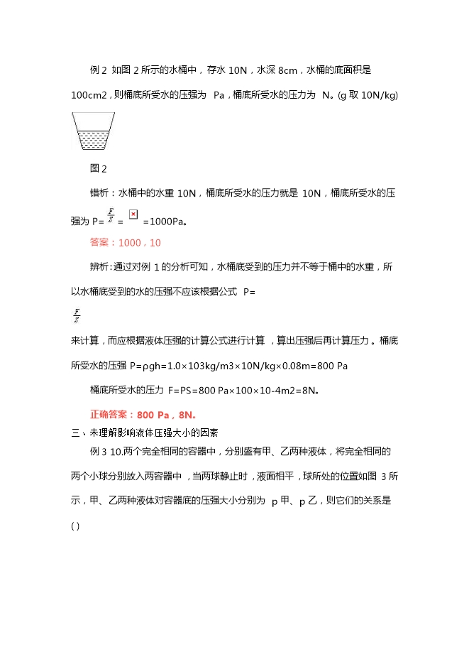 正确答案:B。 二、未弄清压强公式和液体压强公式的适用范围