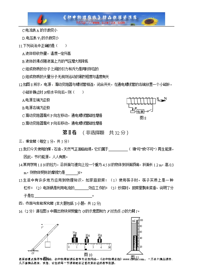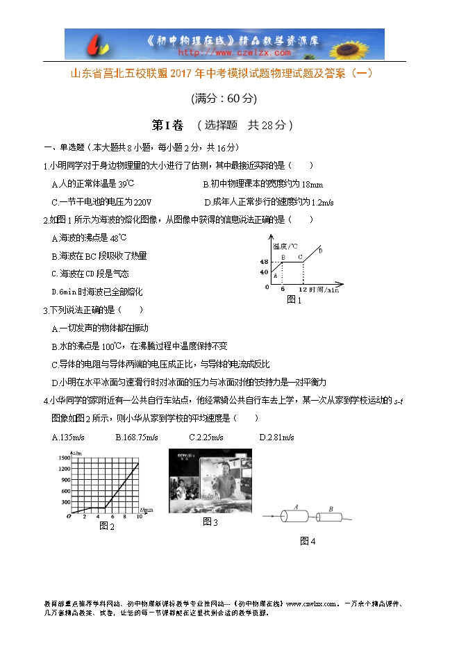 山东省莒北五校联盟2017年中考模拟试题物理试题及答案(一)