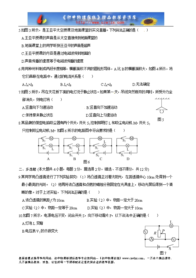 4.小华同学的家附近有一公共自行车站点,他经常骑公共自行车去上学,某一次从家到学校运动的s-t图象如图2所示,则小华从家到学校的平均速度是( )