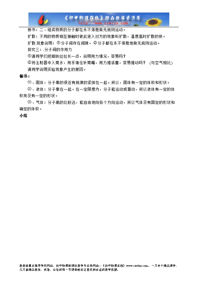 在回忆物质组成知识 的基础上,由老师或同学提出问题,这些微粒在物体中是怎样组合的呢?将 学生的思维拉入本节内容的学习上。
