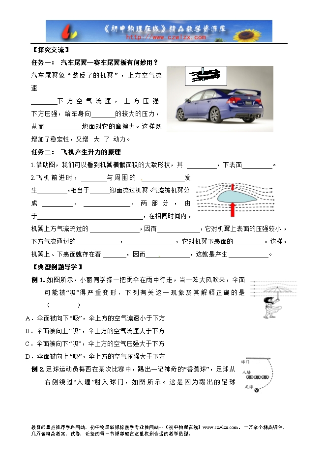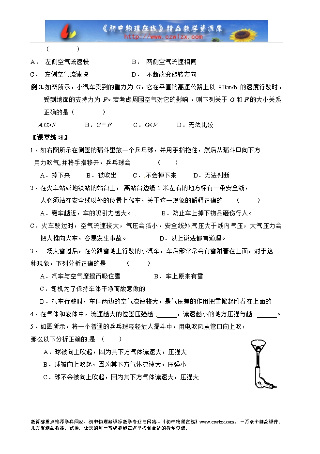 (3)能运用流体压强与流速的关系的知识分析生活中有关事例