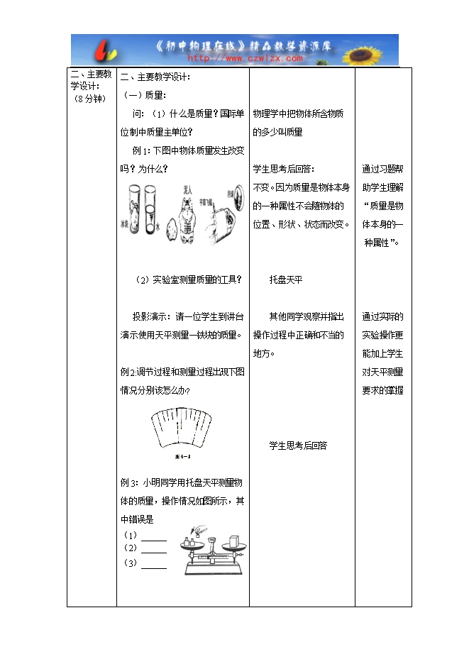 1、对质量的概念有进一步的认识;会 用天平测量物体的质量;