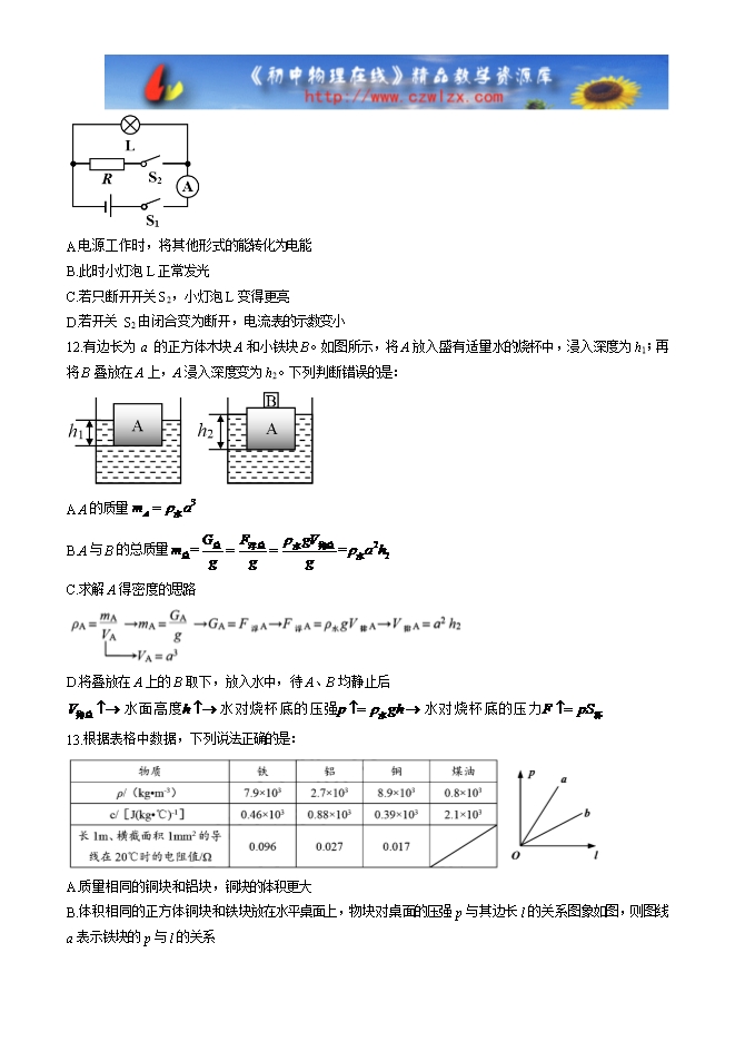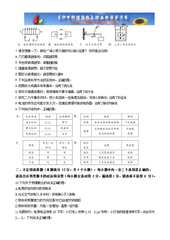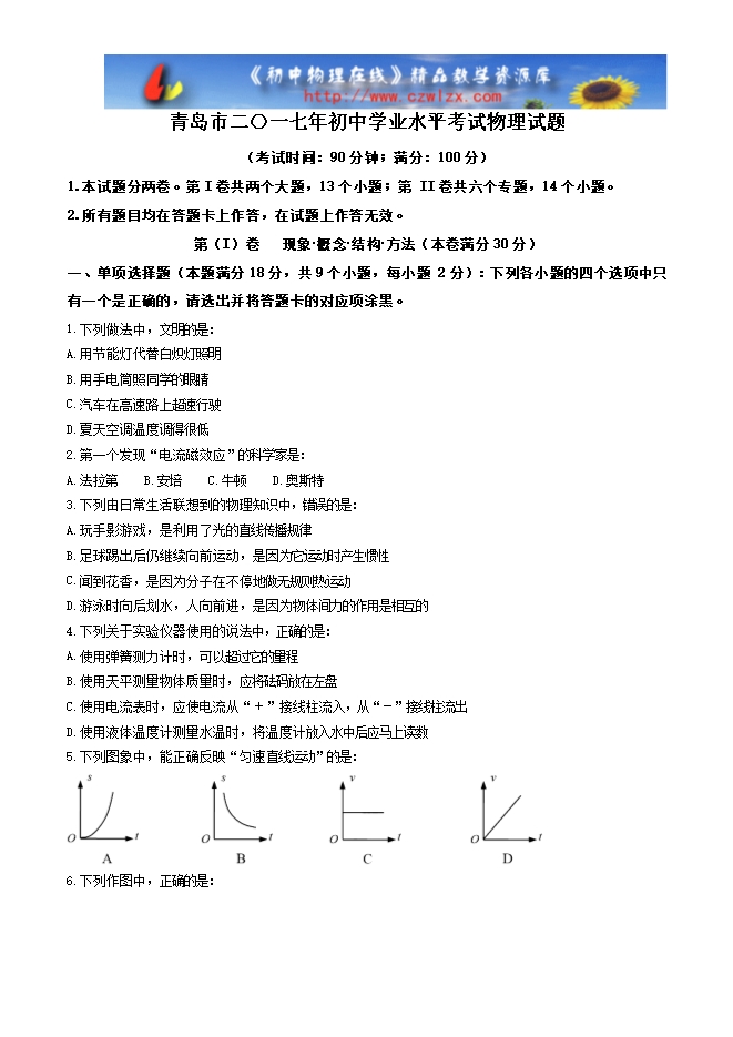 山东省青岛市2017年中考物理试题(精校word版、无答案)