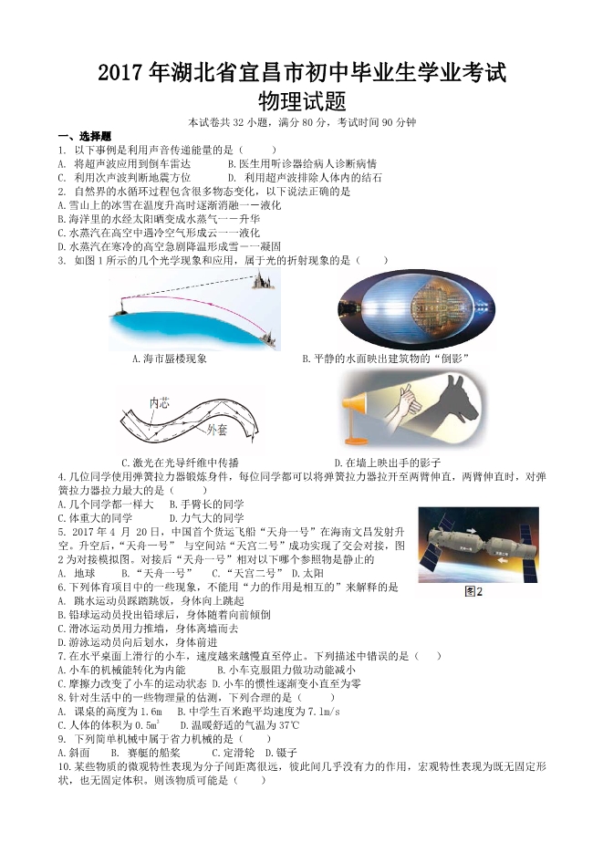 湖北省宜昌市2017年中考物理试题(PDF版)