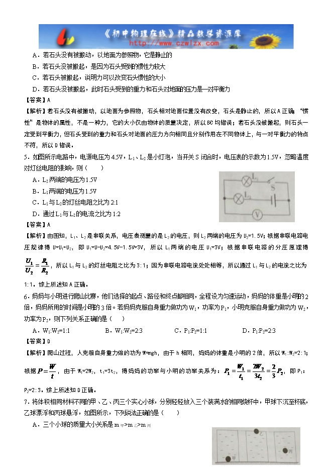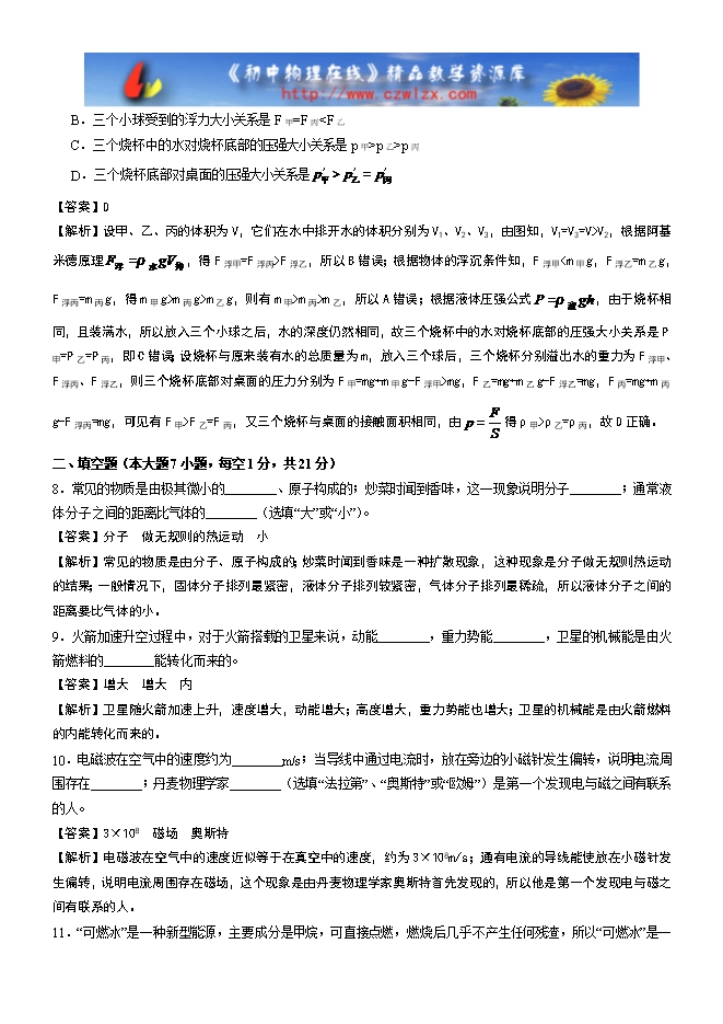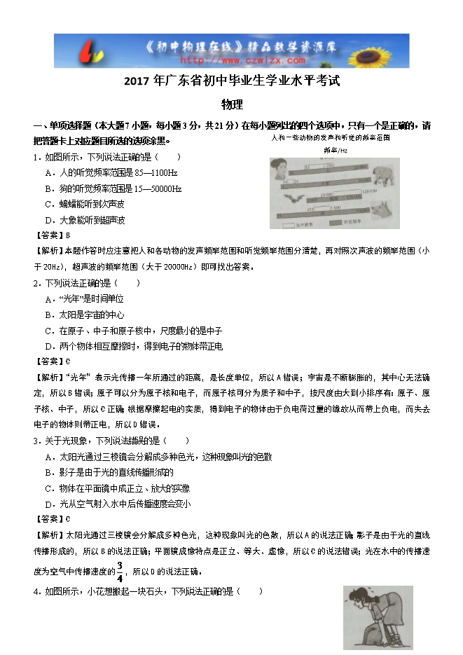 2017年广东省初中毕业考试物理试卷(解析版,word文件)