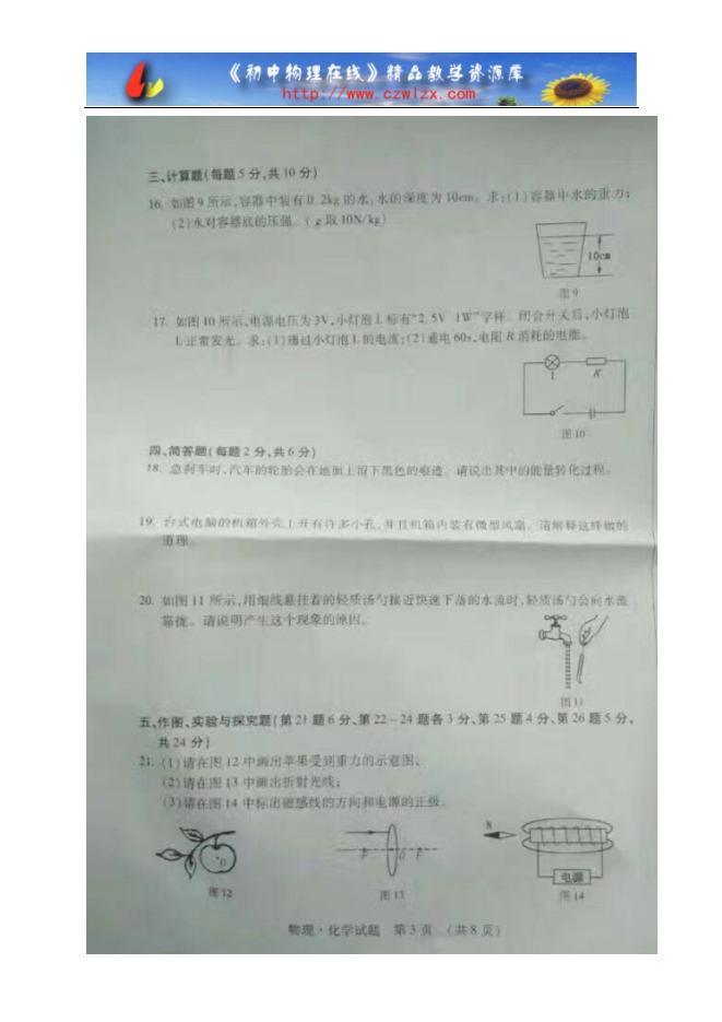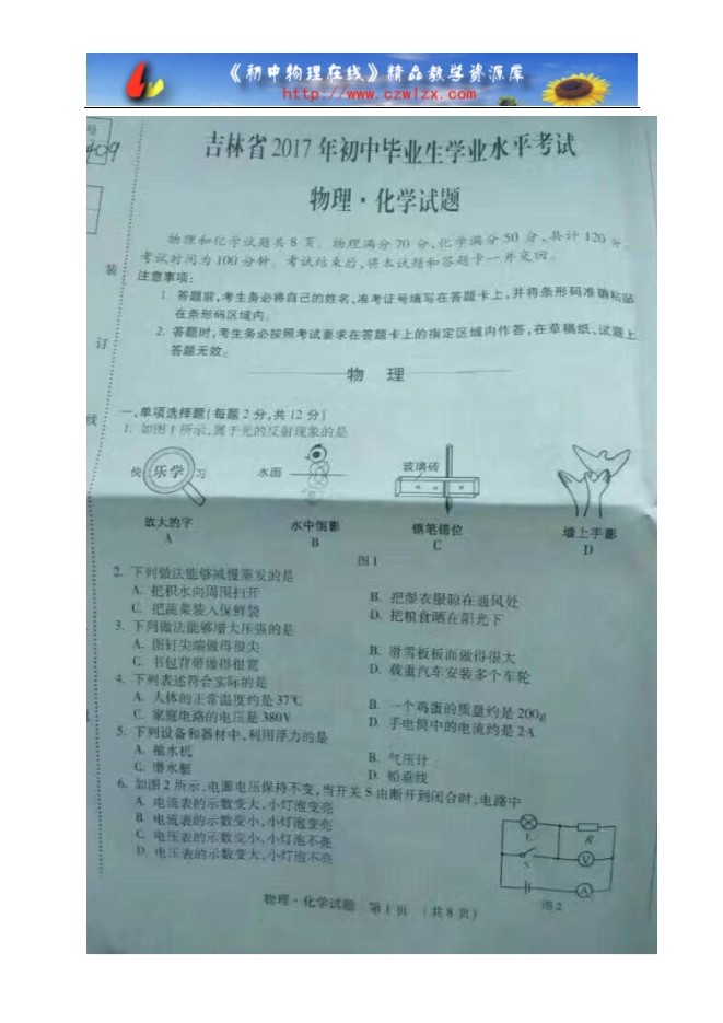 【内容简介】吉林省2017年中考物理试题(图片版,含答案)
