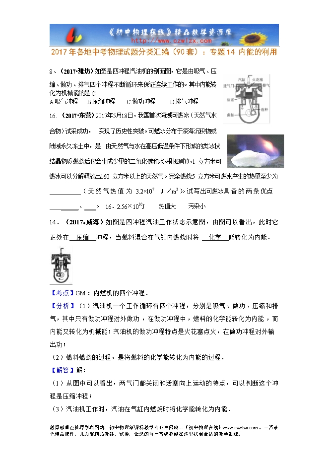 - 15452017年各地中考物理试题分类汇编(90套):专题27 科普与应用