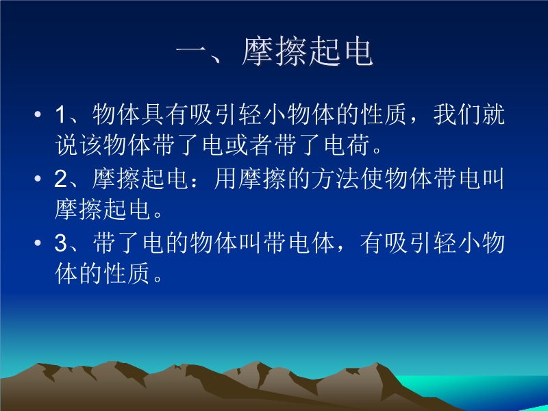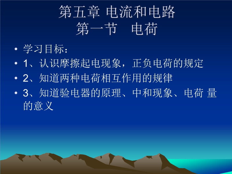 课件展示的是人教版九年级第五章第一节《电荷》的内容,采用的目标教学法,对本节的研究内容重点作了较醒目的展示,注重了前后知识的衔接,新旧知识的联系,也注重了学生学后能力的形成练习。课件背景优美,是一节很实用的课件。