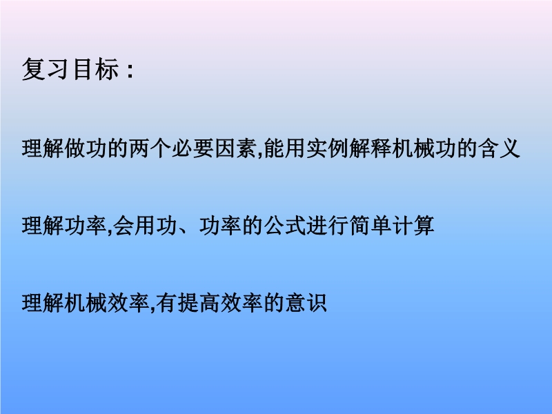 【内容简介】本课件可供中考综合复习使用,内容主要包括做功的概念、功的计算、功的意义、功率的意义和计算等,课件分为三个模块:基本内容、重难点突破、能力检测与练习,课件内精选了大量的例题和习题,有一些是近年来的中考题,综合性较强,可培养学生的综合应用能力。