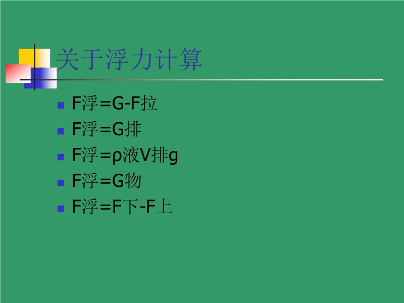 【内容简介】本课件总结了浮力的计算方法并精选了适量的习题,另外以具体的实例分析了电路查错的方法,重点总结了物理作图题的类型和解法,如光路图、电路图、力的图示和杠杆的力臂等,可供中考综合复习时参考使用。