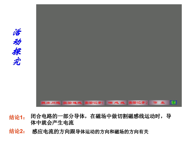 【内容简介】这是沪粤教材《17.3发电机为什么能发电》的教学课件,也适合其他版本的类似内容的学习。里面包含有一个电磁感应的Flash动画实验操作,从而把抽象的内容形象化,便于学生的理解和学习!!