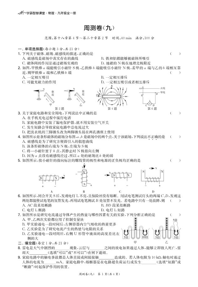 - 1594【教学课件】人教版九年级物理 第二十章 电与磁 第1节 磁现象 磁场 精品课件与配套教案
