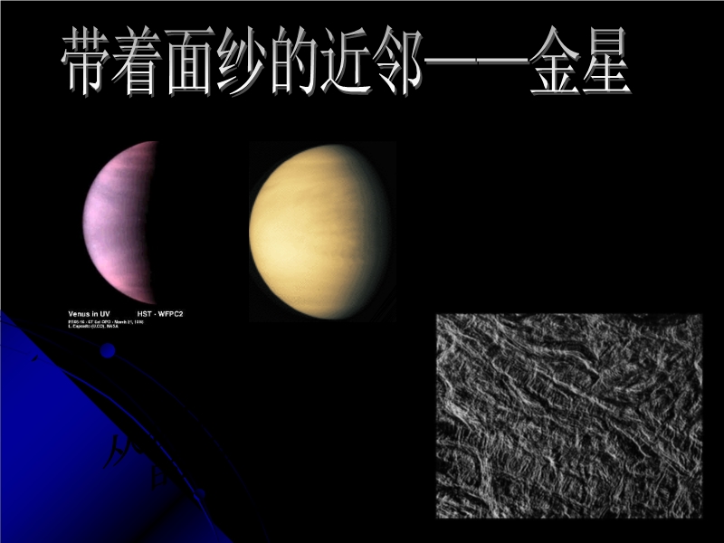 【内容简介】本课件以北师大版新教材第十六章第二节为基础制作,共由14张幻灯片组成。课件以丰富的图片向学生展示了太阳系的各大行星的情况以及人类对宇宙的探索历程。课件制作生动、形象,可供教学“宇宙”时参考使用。