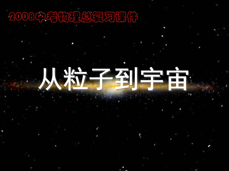 【内容简介】中考总复习课件系列之《从粒子到宇宙》ppt课件,由37张幻灯片组成,本课件较为详细的复习整理了本章知识,能使学生较为轻松的复习掌握好本章知识点。课件突出了互动性,例题采用了历年中考真题的形式出现,可使学生及时了解本课复习的效果,同时课件采用较的图片,均为较新的科学图片,使扩大学生的知识面。